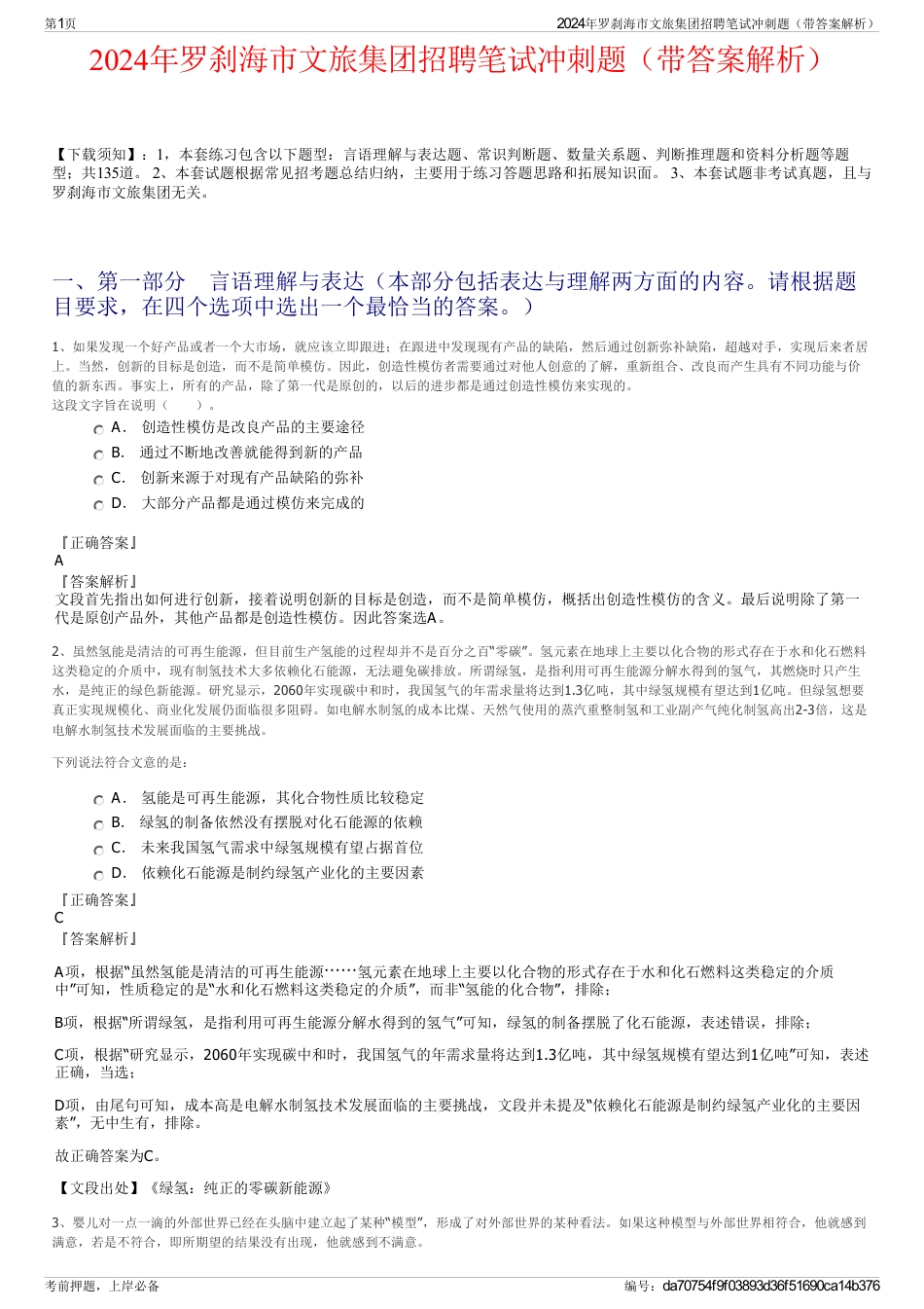 2024年罗刹海市文旅集团招聘笔试冲刺题(带答案解析)【下载须知】:1,本套练习包含以下题型:言语理解与表达题、常识判断题、数量关系题...