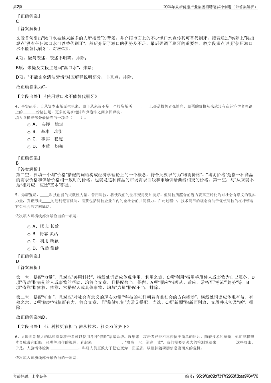 2024年泉新健康产业集团招聘笔试冲刺题(带答案解析)_第2页