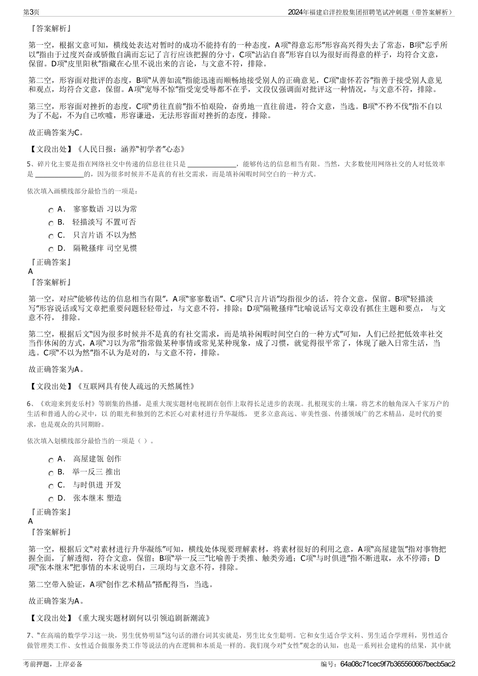 2024年福建启洋控股集团招聘笔试冲刺题(带答案解析)【下载须知】:1,本套练习包含以下题型:言语理解与表达题、常识判断题、数量关系题...