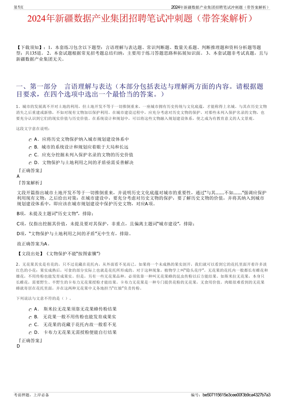 2024年新疆数据产业集团招聘笔试冲刺题(带答案解析)【下载须知】:1,本套练习包含以下题型:言语理解与表达题、常识判断题、数量关系题...