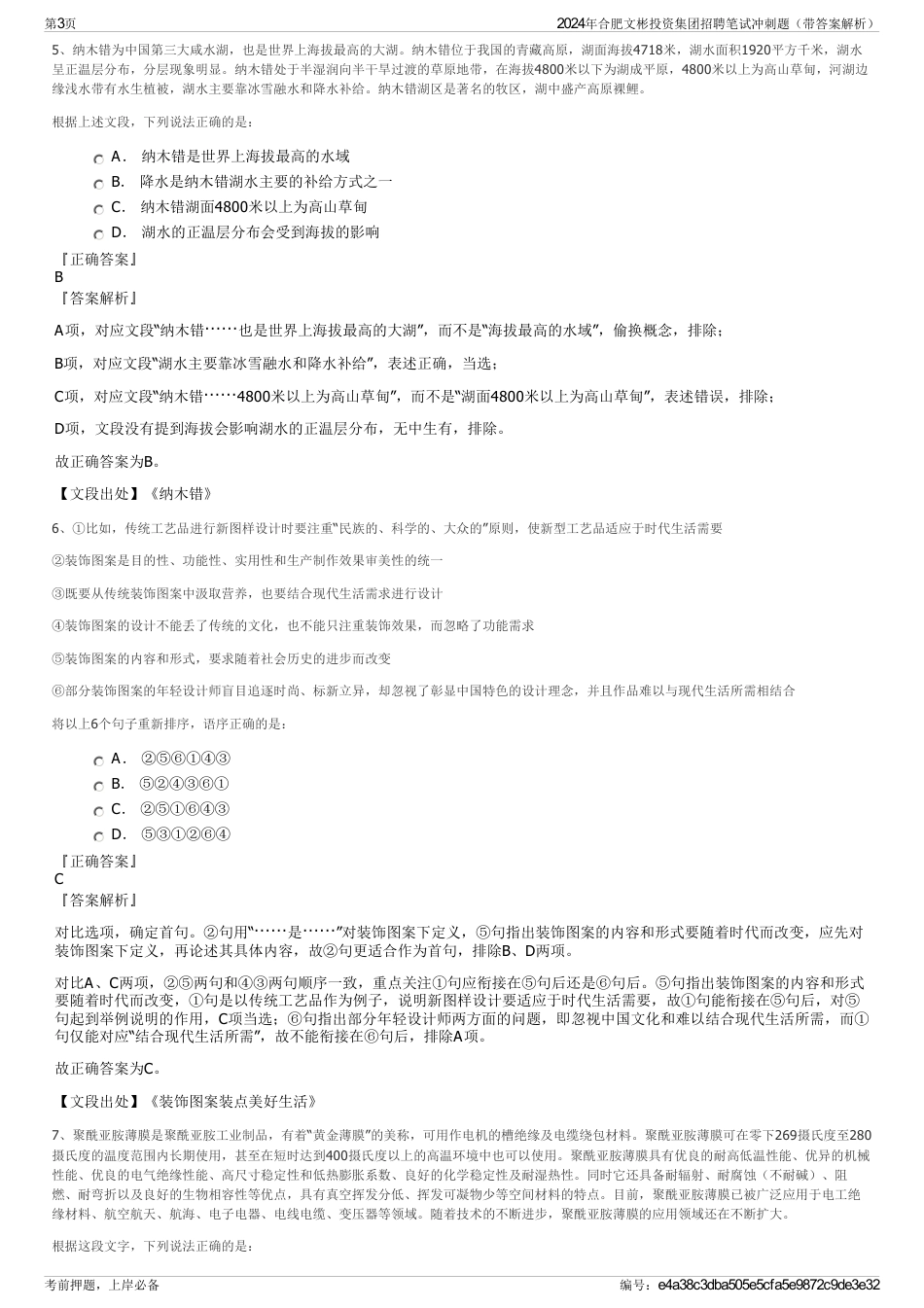 2024年合肥文彬投资集团招聘笔试冲刺题(带答案解析)_第3页