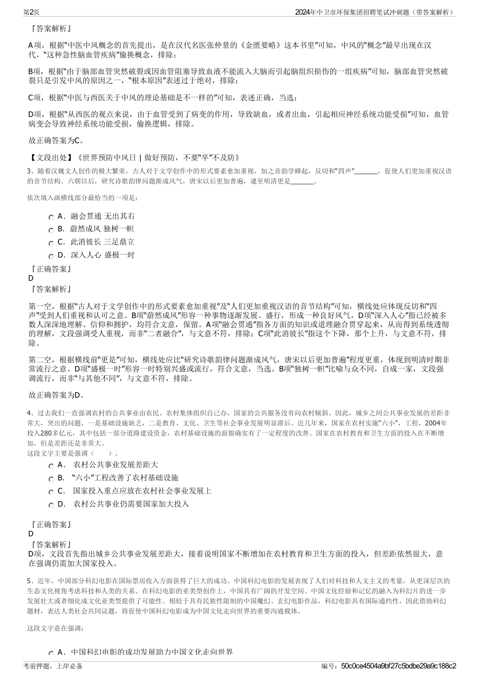 2024年中卫市环保集团招聘笔试冲刺题(带答案解析)_第2页
