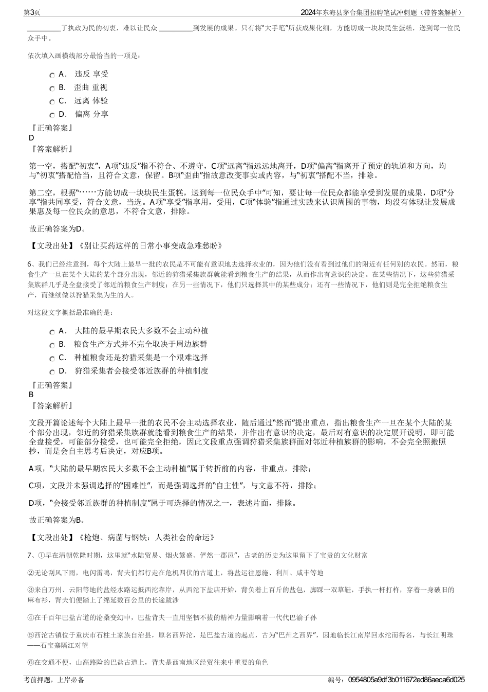 2024年东海县茅台集团招聘笔试冲刺题(带答案解析)【下载须知】:1,本套练习包含以下题型:言语理解与表达题、常识判断题、数量关系题、...