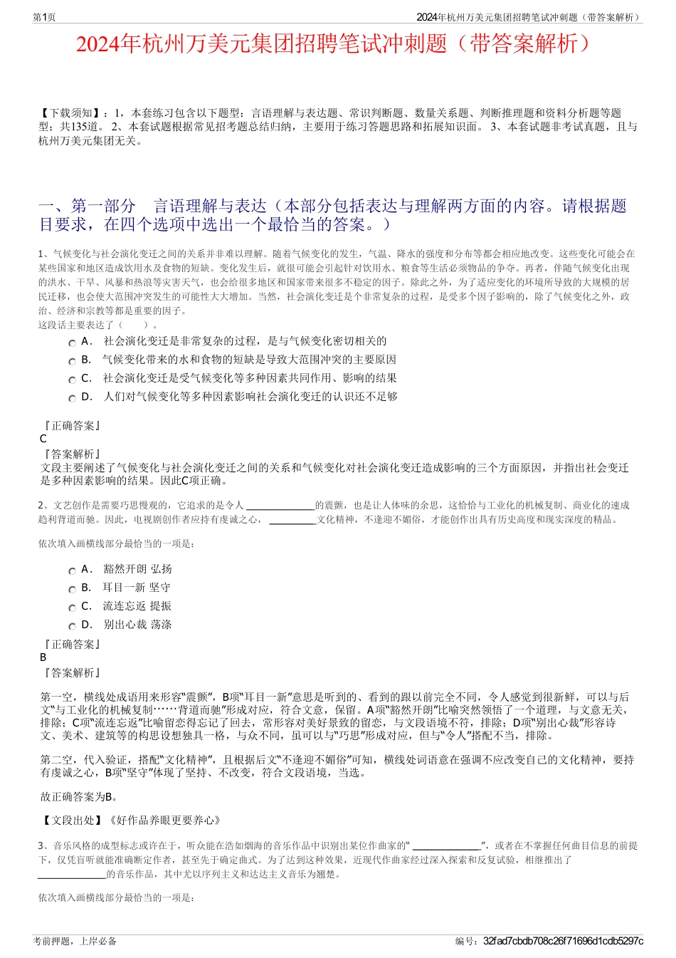 2024年杭州万美元集团招聘笔试冲刺题(带答案解析)【下载须知】:1,本套练习包含以下题型:言语理解与表达题、常识判断题、数量关系题、...