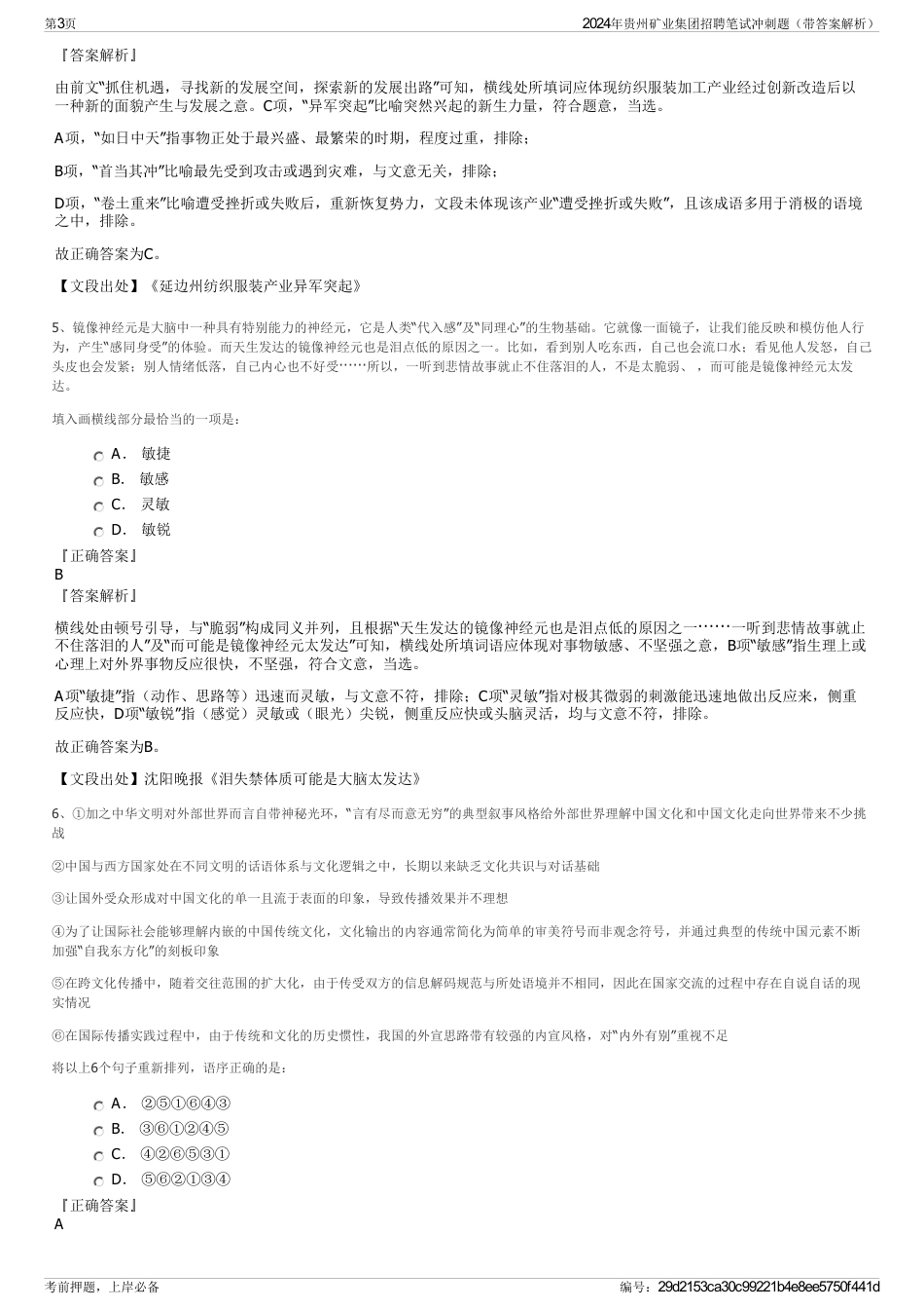 2024年贵州矿业集团招聘笔试冲刺题(带答案解析)_第3页