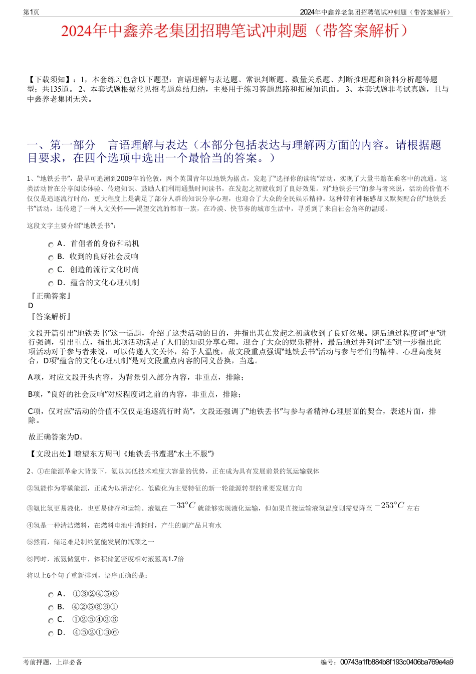 2024年中鑫养老集团招聘笔试冲刺题(带答案解析)【下载须知】:1,本套练习包含以下题型:言语理解与表达题、常识判断题、数量关系题、判...