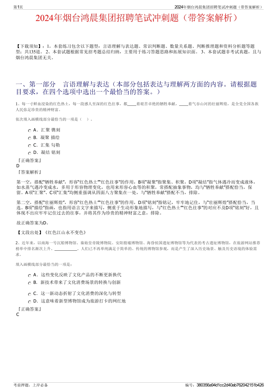 考前押题,上岸必备