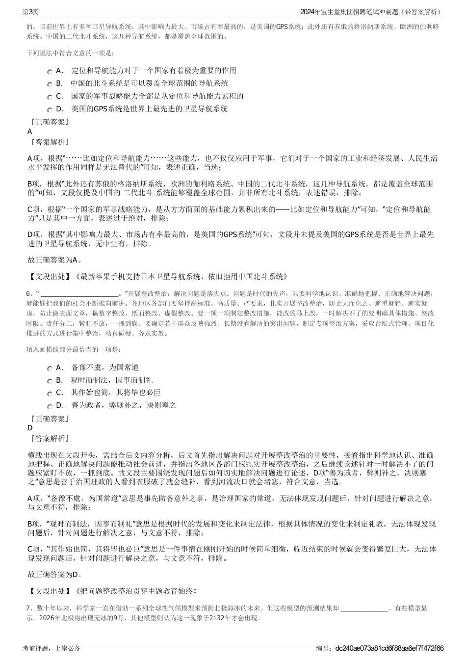 2024年宝生堂集团招聘笔试冲刺题(带答案解析)_第3页