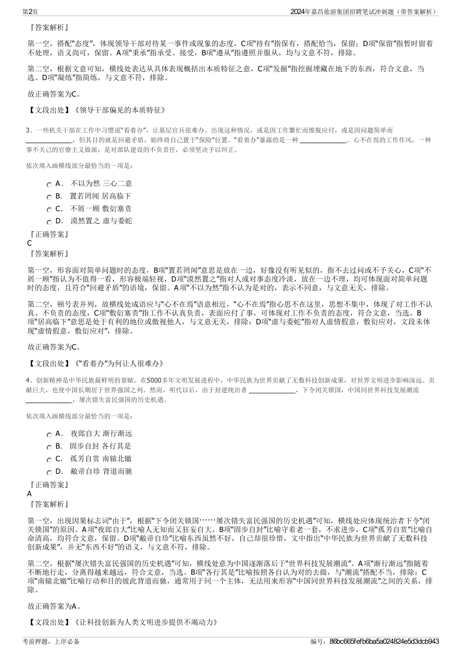 2024年嘉昌旅游集团招聘笔试冲刺题(带答案解析)_第2页