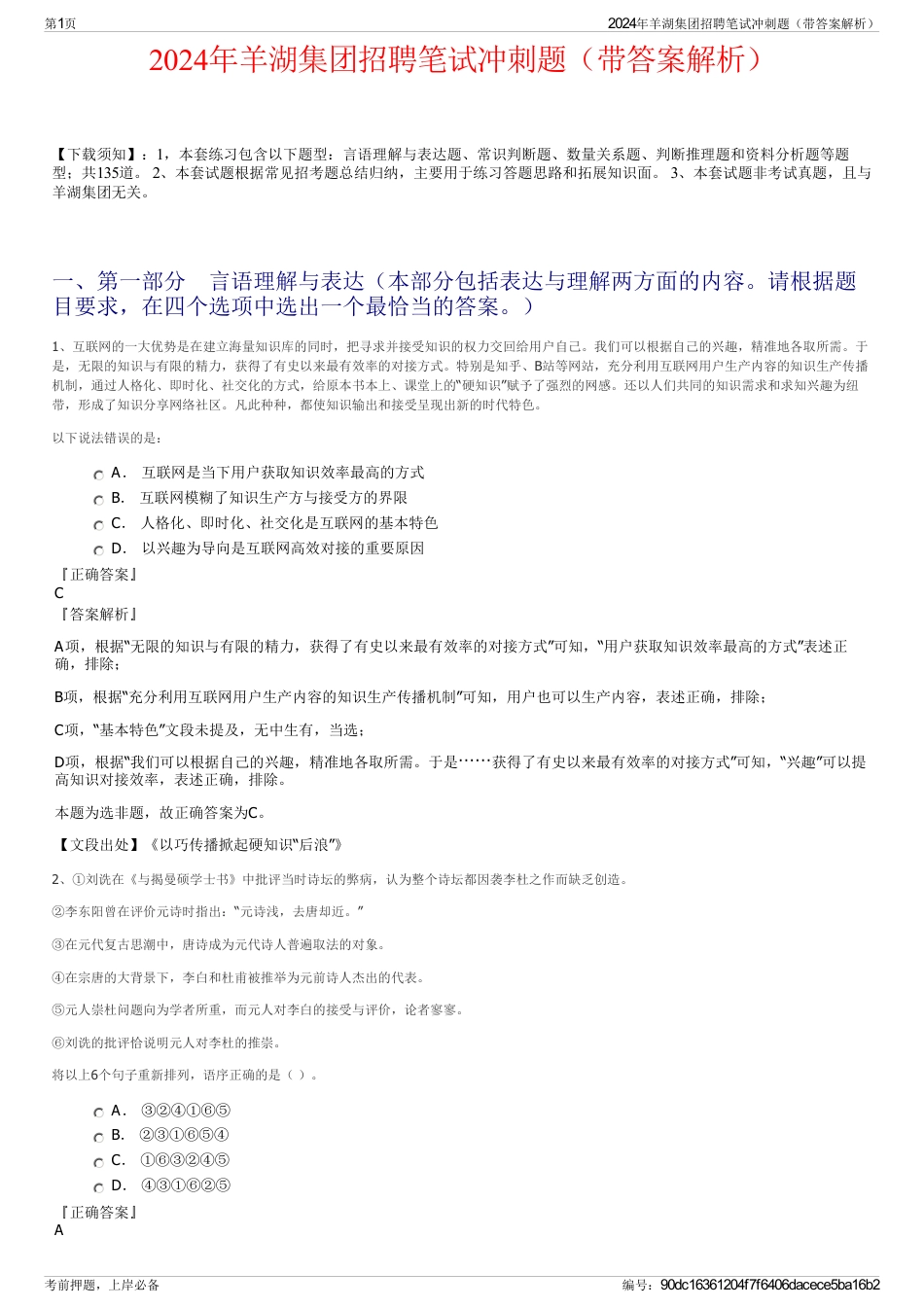 2024年羊湖集团招聘笔试冲刺题(带答案解析)【下载须知】:1,本套练习包含以下题型:言语理解与表达题、常识判断题、数量关系题、判断推...