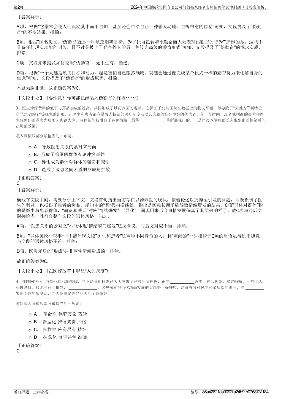 2024年中国邮政集团有限公司前郭县八郎乡支局招聘笔试冲刺题(带答案解析)_第2页