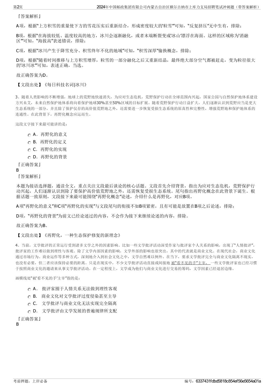 2024年中国邮政集团有限公司内蒙古自治区额尔古纳市上库力支局招聘笔试冲刺题(带答案解析)【下载须知】:1,本套练习包含以下题型:言语...
