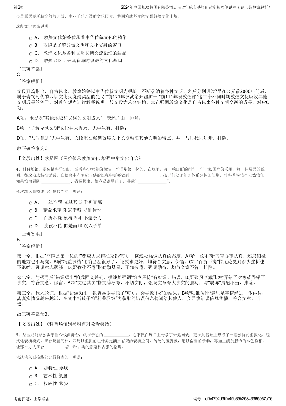 2024年中国邮政集团有限公司云南省宣威市基场邮政所招聘笔试冲刺题(带答案解析)【下载须知】:1,本套练习包含以下题型:言语理解与表达...