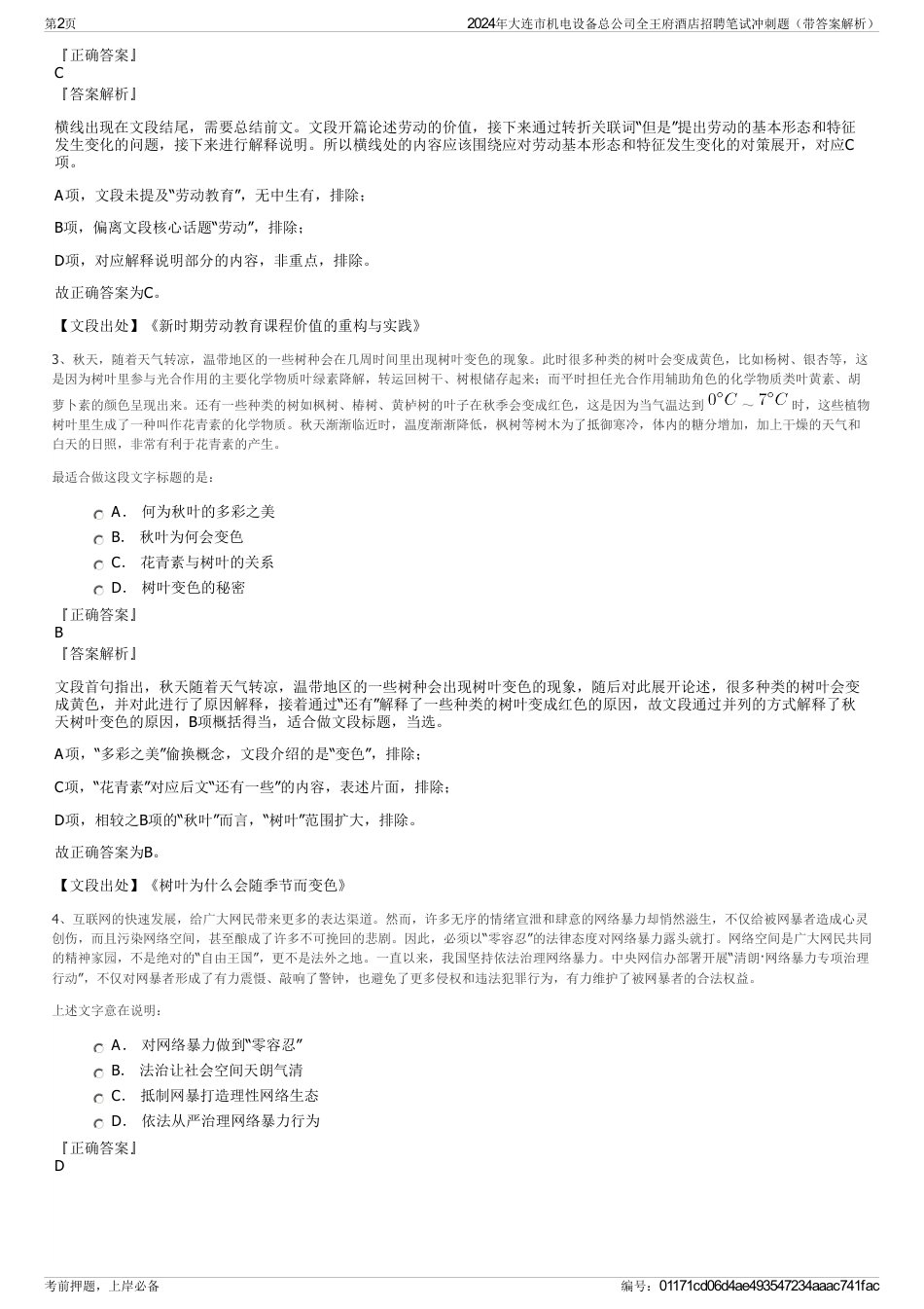2024年大连市机电设备总公司全王府酒店招聘笔试冲刺题(带答案解析)_第2页