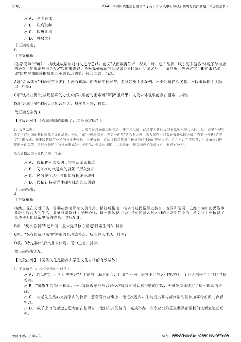 2024年中国邮政集团有限公司东莞市长安镇中心邮政所招聘笔试冲刺题(带答案解析)【下载须知】:1,本套练习包含以下题型:言语理解与表达...