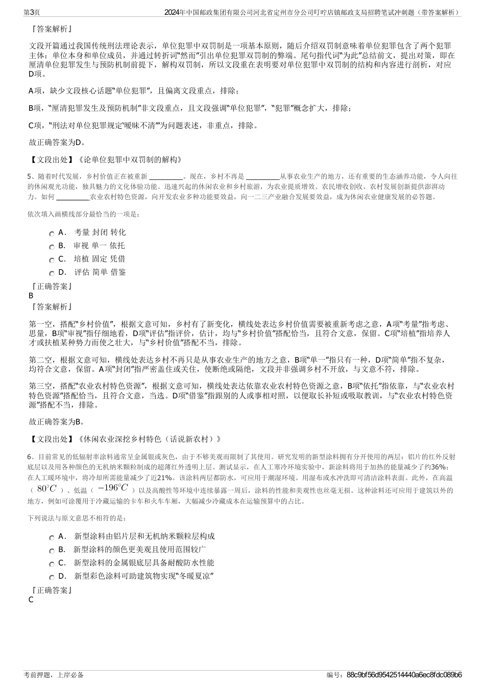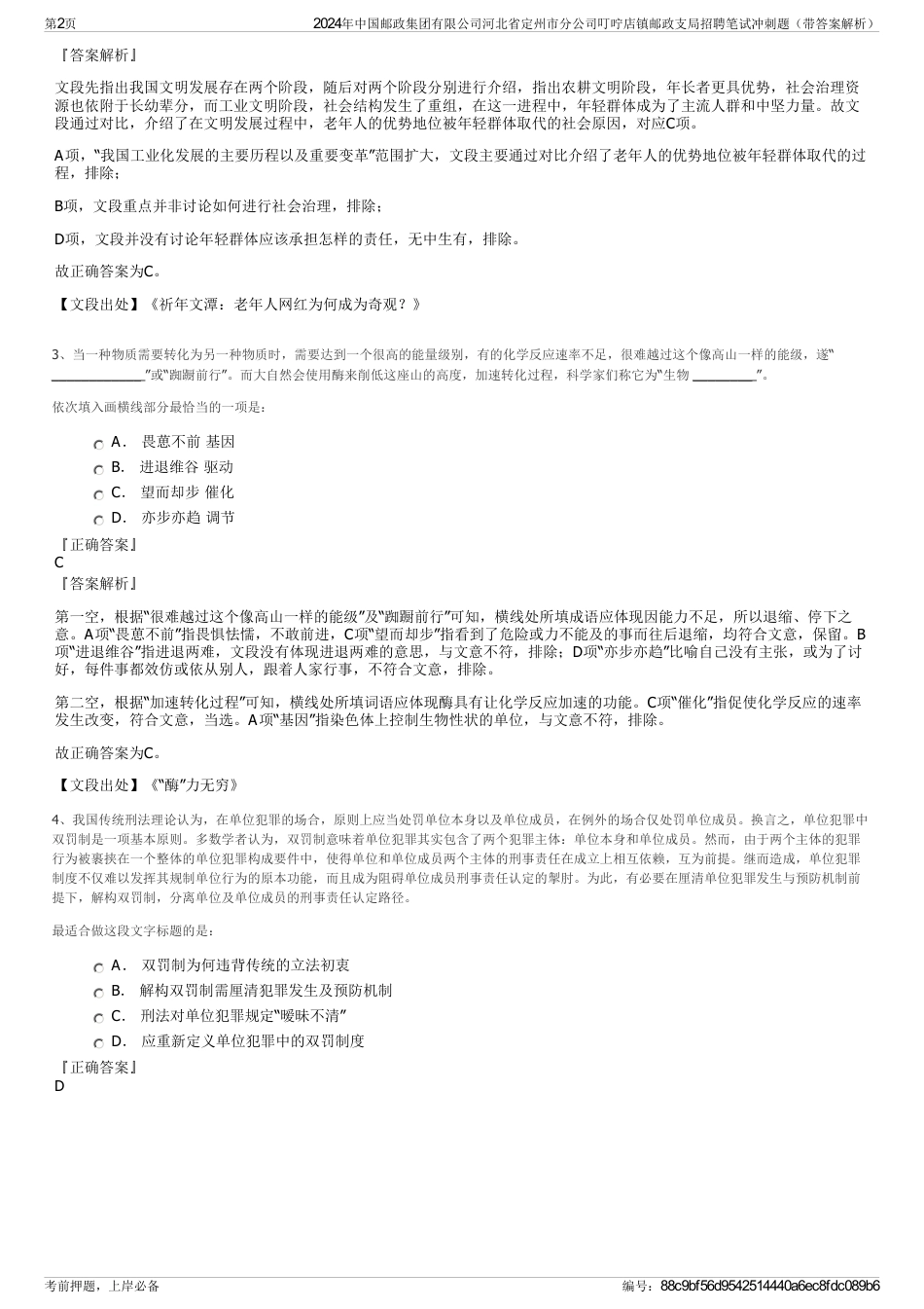 2024年中国邮政集团有限公司河北省定州市分公司叮咛店镇邮政支局招聘笔试冲刺题(带答案解析)【下载须知】:1,本套练习包含以下题型:言...