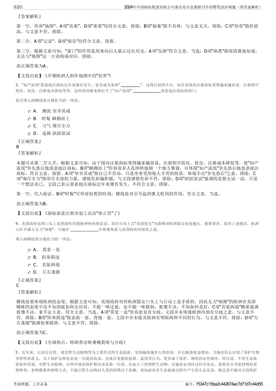 2024年中国邮政集团有限公司秦皇岛市金都报刊亭招聘笔试冲刺题(带答案解析)_第2页
