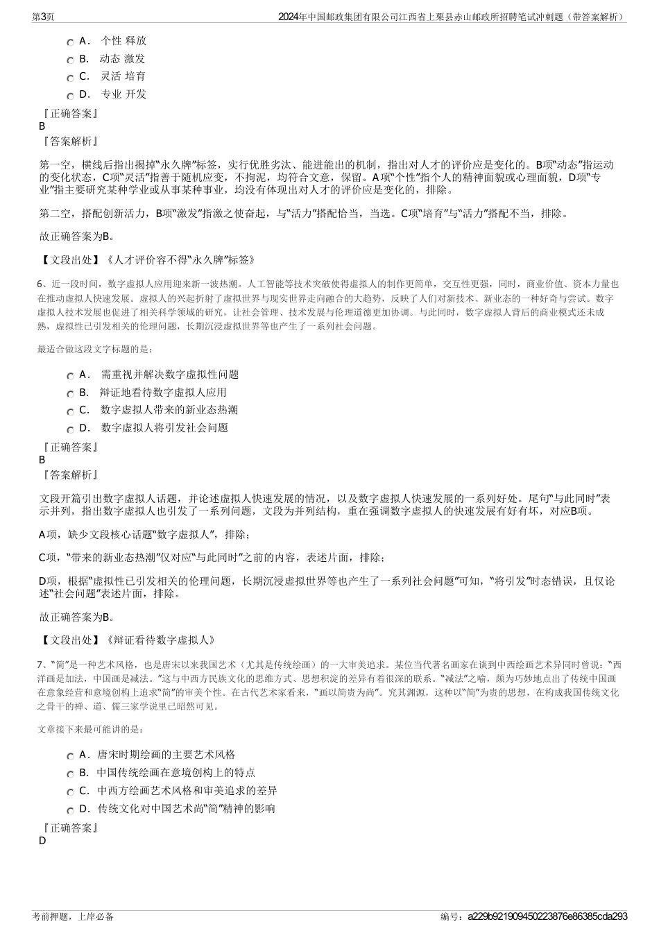 2024年中国邮政集团有限公司江西省上栗县赤山邮政所招聘笔试冲刺题(带答案解析)【下载须知】:1,本套练习包含以下题型:言语理解与表达...