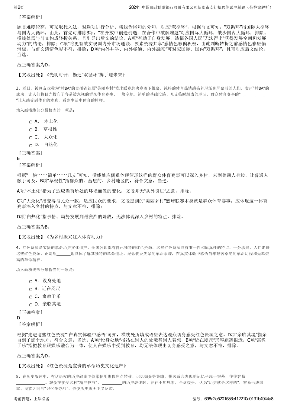 2024年中国邮政储蓄银行股份有限公司新郑市支行招聘笔试冲刺题(带答案解析)【下载须知】:1,本套练习包含以下题型:言语理解与表达题、...