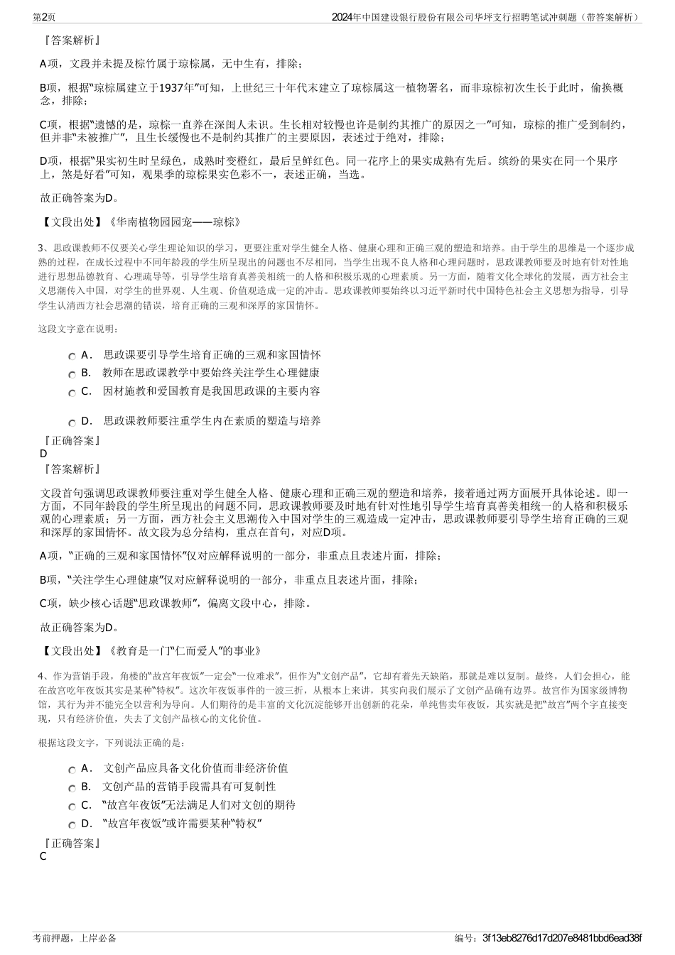 2024年中国建设银行股份有限公司华坪支行招聘笔试冲刺题(带答案解析)_第2页