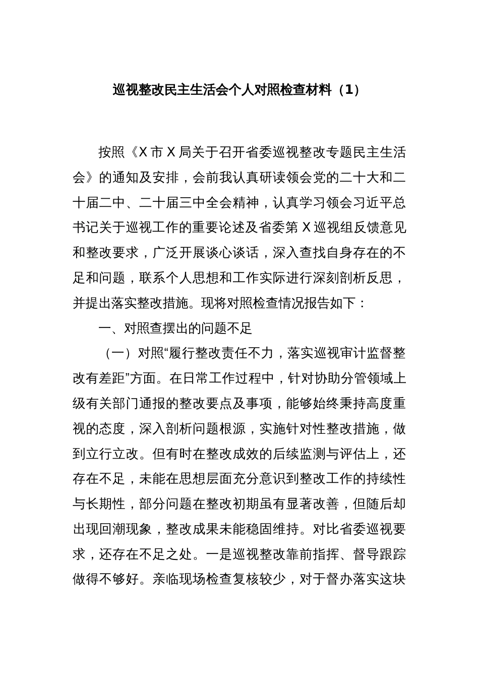 巡视整改民主生活会个人对照检查材料(1)_第1页