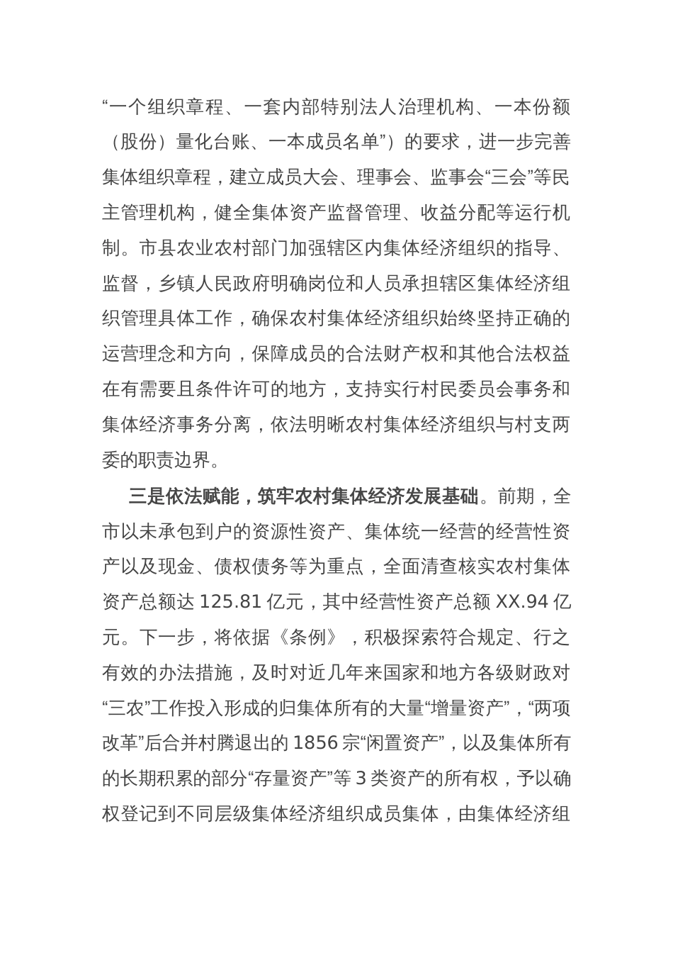 市推进乡村振兴情况汇报按照会议安排,现就发展壮大新型农村集体经济,厚植乡村振兴和农业农村现代化物质基础作一简要发言。一是聚焦改革,...