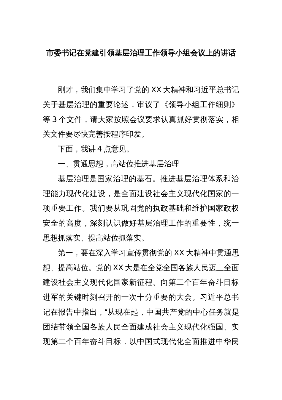 市委书记在党建引领基层治理工作领导小组会议上的讲话_第1页