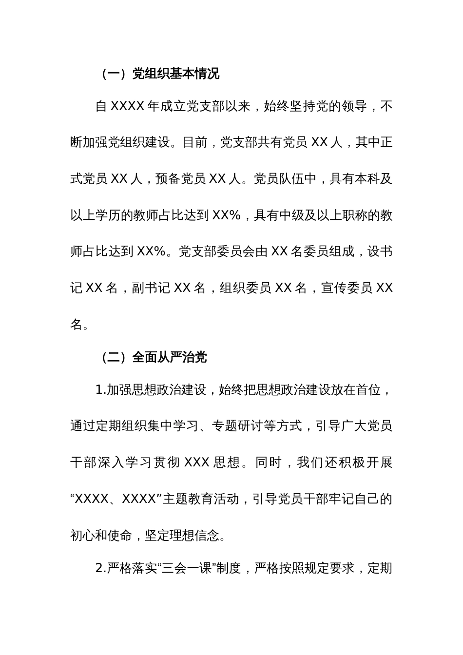 XX党建近三年工作汇报及工作总结(一)工作汇报材料一、指导思想近三年来,XX党支部在上级党委的领导下,以XXX思想为指导,全面贯彻落实党...