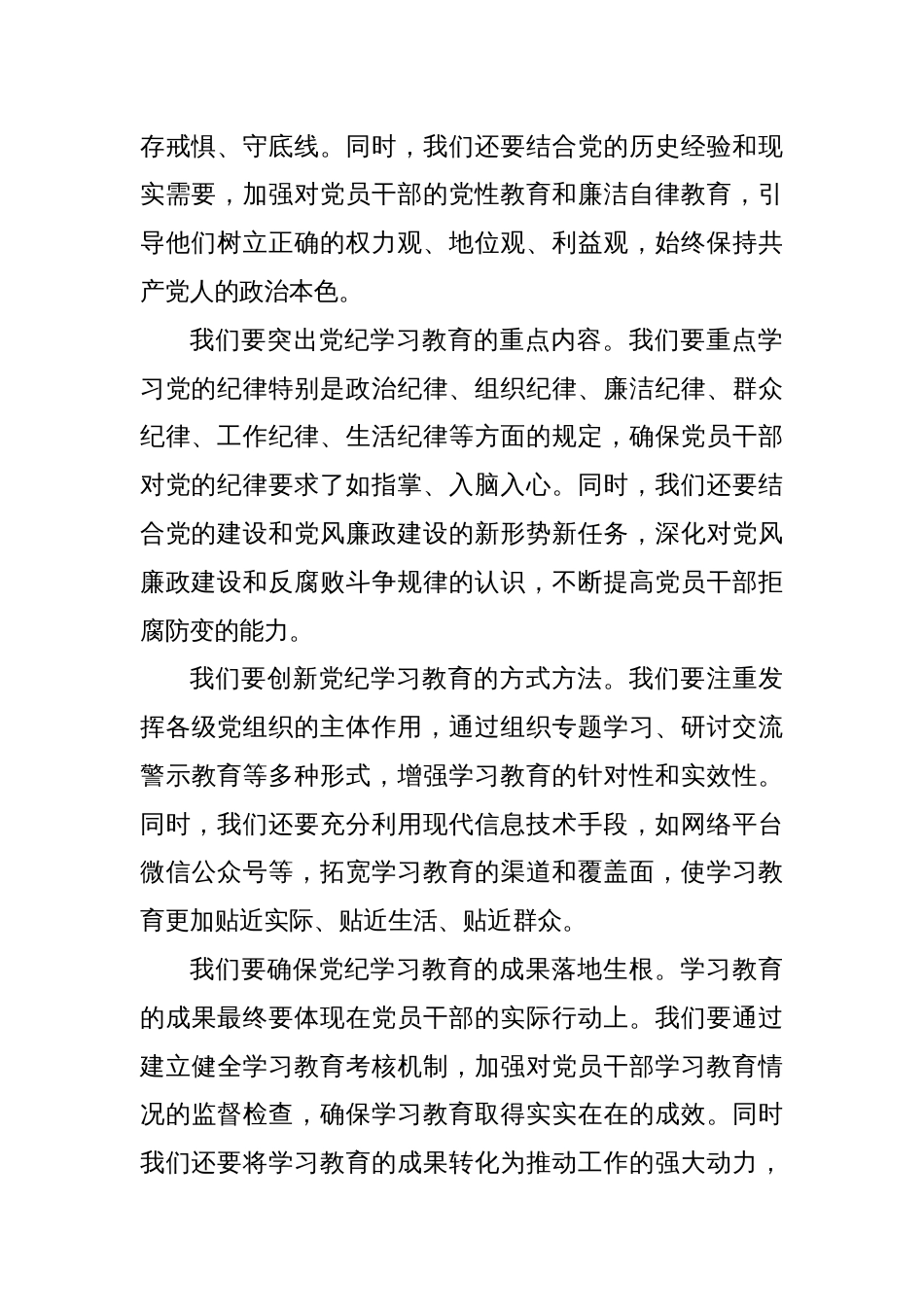 2024年党纪学习教育领导研讨发言稿各位同志:大家好!今天,我们齐聚一堂,共同探讨和推进全党的党纪学习教育工作。近日,中共中央办公厅印...