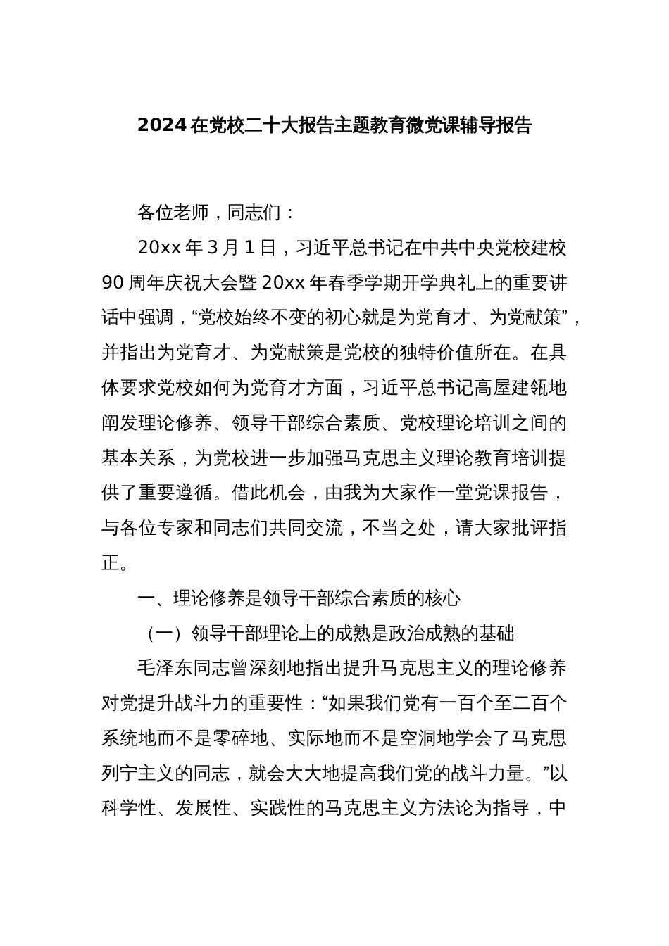2024在党校二十大报告主题教育微党课辅导报告_第1页