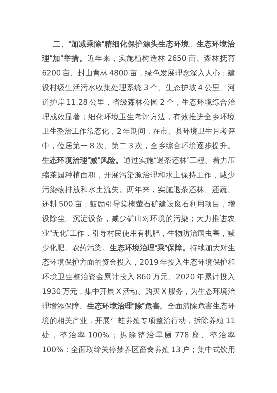 乡生态环境保护经验做法情况汇报近年来,乡党委、政府积极践行习近平总书记“绿水青山就是金山银山”生态文明建设理念,把临江源头生态环境...