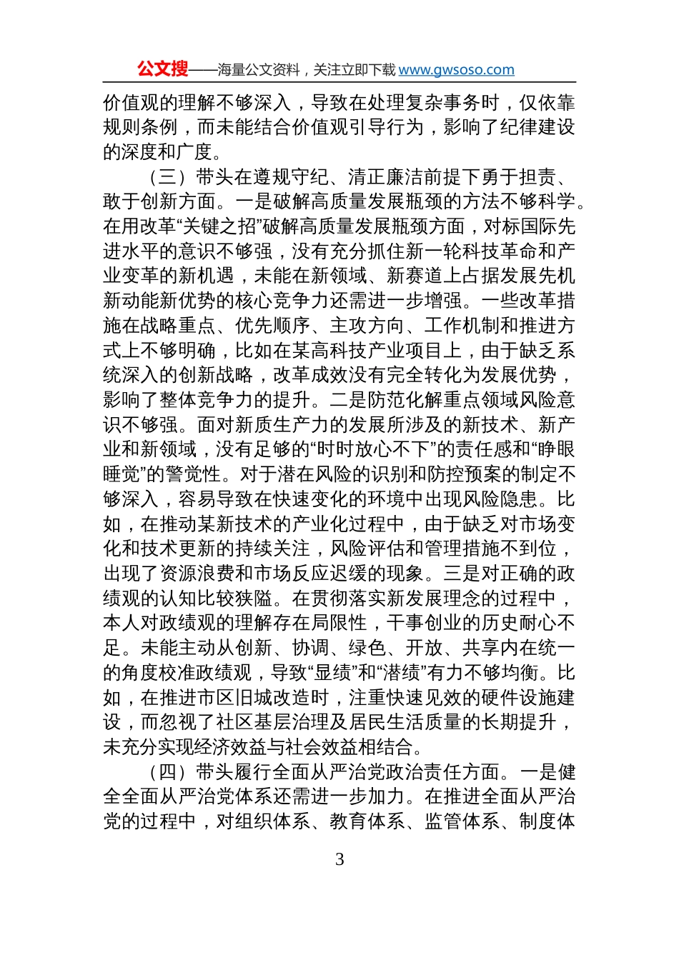 某市委书记2024年度民主生活会对照检查剖析发言材料(含反面案例剖析)_第3页