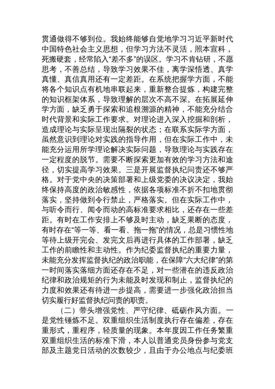 县纪委书记2024年度民主生活会个人对照 检查材料_第2页