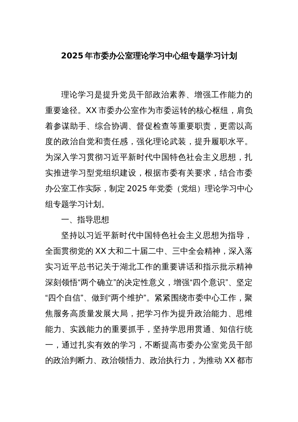 2025年市委办公室理论学习中心组专题学习计划_第1页