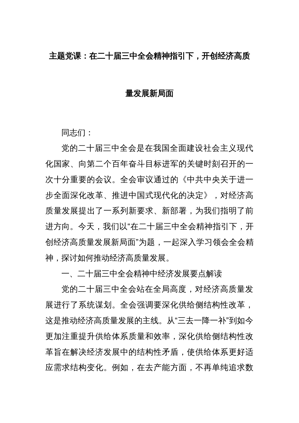 主题党课:在二十届三中全会精神指引下,开创经济高质量发展新局面_第1页