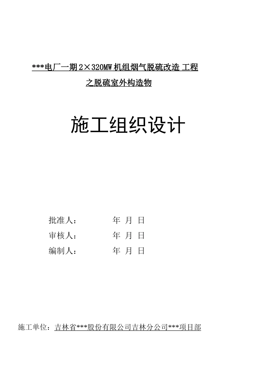 ***电厂一期2×320MW机组烟气脱硫改造工程之脱硫室外构造物施工组织设计批准人:年月日审核人:年月日编制人:年月日施工单位:吉林省***股...