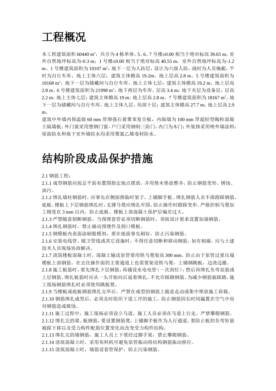 目录第一章工程概况...............................................................2第二章结构阶段成品保护措施.........................