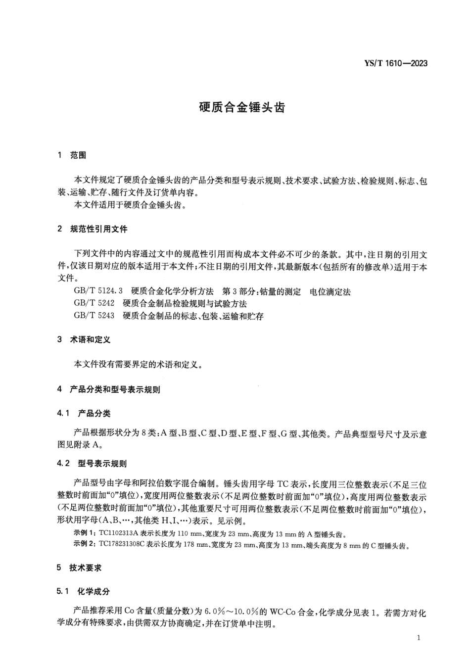 YS∕T 1610-2023 硬质合金锤头齿_第1页