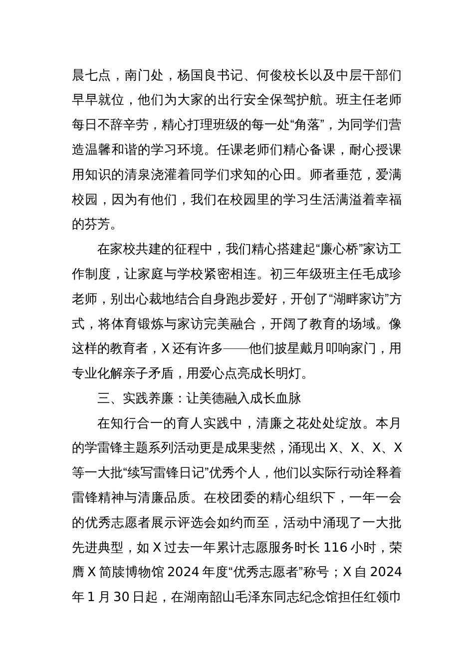 第8周升旗仪式上的讲话:《清明话清廉》老师们、同学们:大家早上好!在这春和景明、草长莺飞的美好时节,我们即将迎来慎终追远、缅怀先人...